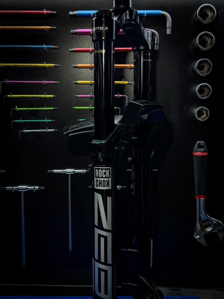 C’est redonner à ta fourche et ton amortisseur leur fonctionnement d’origine. Tout est démonté, nettoyé, contrôlé, puis remonté avec des pièces neuves et les bons réglages.